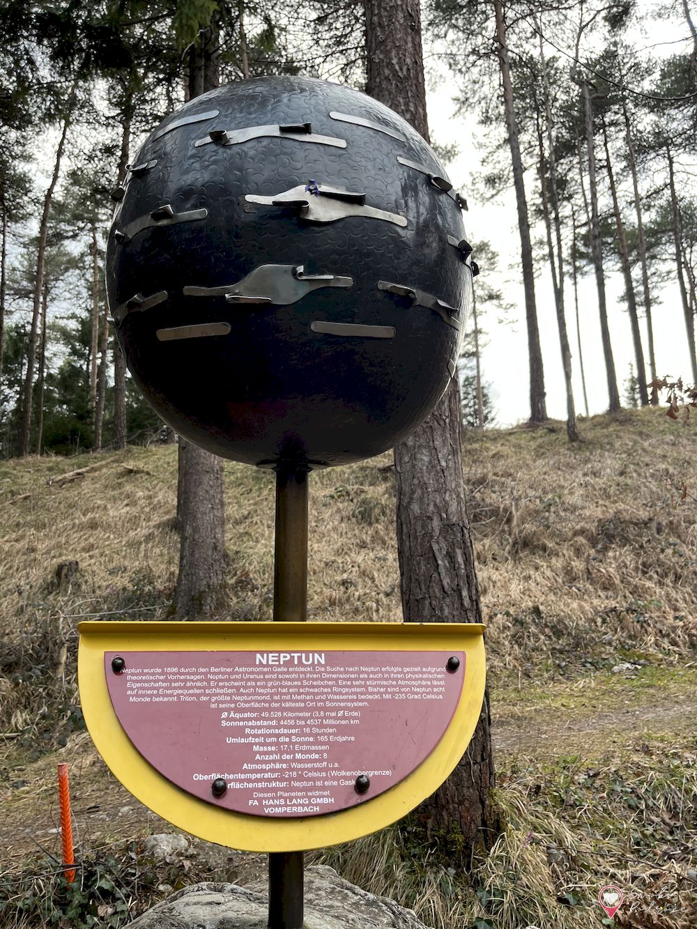 I tak wracając z włoskiej Marillevy, w drodze do Salzburga, trafiliśmy na edukacyjną ścieżkę planetarną Terfens (Terfens Educational Planetary Trail). To ścieżka w Austrii, kawałek za Innsbruckiem, oferująca interaktywną naukę o Układzie Słonecznym. Pętla o długości około 2,5 km prowadzi przez las doliny „Forchat” w pobliżu miejscowości Terfens, z punktem początkowym przy szkole podstawowej w dzielnicy Vomperbach. Spacer zajmuje około godziny i jest dostępny przez cały rok, również dla rodzin z dziećmi oraz osób z wózkami dziecięcymi.