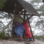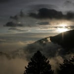 Wyprawę zaplanowaliśmy na piątek i sobotę (19-20.10), bo tylko wtedy były jeszcze wolne miejsca w schronisku. I był to także ostatni możliwy termin, bo w kolejny weekend schronisko było już zamykane przed zimą. Początki nie były łatwe – pobudka o 6! Najpóźniej o 7 musieliśmy wyjść z akademika, by dojechać na drugi koniec miasta na dworzec autobusowy, a przed wyjściem koniecznie należało zjeść śniadanie i wrzucić do plecaków prowiant i gorącą herbatkę. Pojechaliśmy polską ekipą – 5 osób, w sam raz na górską wędrówkę. W autobusie oczywiście jeszcze każdy dosypiał, a koło godziny 10 dotarliśmy do miejscowości Litochoro, z której zaczynał się szlak. Ogólnie byliśmy trochę zaniepokojeni, bo na weekend (tzn. od soboty zapowiadali deszcz :/). Dlatego zaczęliśmy myśleć, jak ogarnąć temat w ciągu jednego dnia – gdyby udało się nam dojechać do miejscowości Prionia, moglibyśmy zaoszczędzić 6h marszu i zdobyć górę jeszcze w piątek. Ale okazało się, że taxi wyszłoby strasznie drogo, a autobusy w ogóle tam nie kursują, więc koniec końców zjedliśmy drugie śniadanie i ruszyliśmy przed siebie. Do schroniska doszliśmy dopiero koło 20, pokonując ostatnie odcinki trasy po ciemku, bo niestety zajęło nam to więcej czasu niż pisali w przewodnikach. Na szczęście niektórzy z nas mieli światło, a dodatkowo szła z nami hiszpańska grupka, jak się okazało także z Erasmusa. Byliśmy padnięci, tym bardziej, że wychodząc z Prioni każdy liczył na maksymalnie 2 godziny wędrówki, a za każdym zakrętem okazywało się, że jeszcze spory kawałek przed nami. Najgorszy był moment, gdy już się ściemniało, i za jednym takim zakrętem zobaczyliśmy wielką górę, ze światełkiem na szczycie. Światełkiem było schronisko… Wysoko, daleko przed nami.
